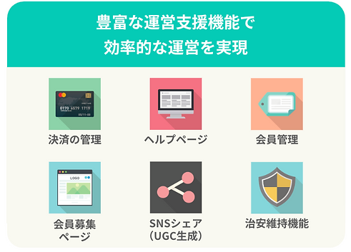 会員制ビジネスのために開発された専用サービスです。ビジネスに必要な機能がたくさん。